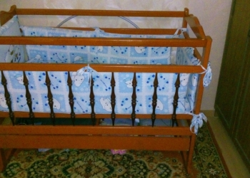 Продается детская кроватка-качалка, б/у, с ящиками внизу для одежды,с матрасом и балдахином, простыня, наволочка и...