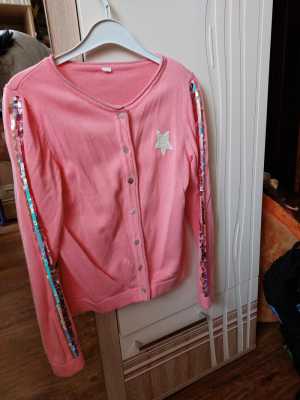 Кофта для девочки, цвет коралловый, на рукавах пайетки, 134 размер, фирма Acoola, в хорошем состоянии.