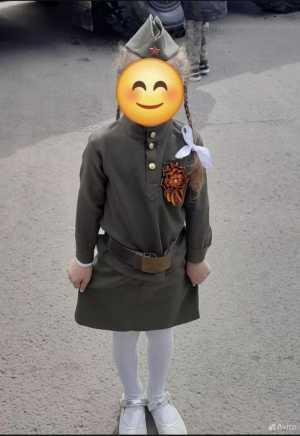 Костюм для девочки на 9 мая. Материал шерсть. Одевала один раз. Ремень и пилотка в наборе