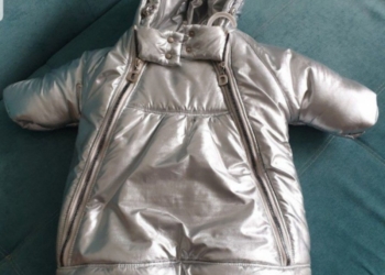 Комбез - конверт из водоотталкивающей ткани в цвете "металлик" , утеплен материалом Termoloft. Внутри флис.