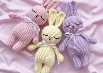 очень красивые зайчики 🐰 ручной работы. длина 15 см. Красивый подарок для детей Плетение также на заказ.