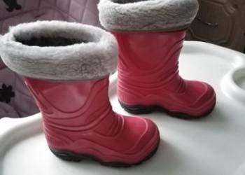 Продам резиновые сапожки для девочки, состояние отличное, одевали пару раз. Длина по стельки примерно 14 см, по подошве 15.