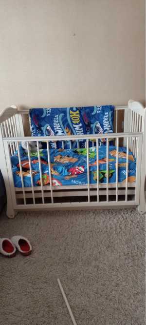 Детская кроватка с маятником б/у в хорошем состоянии.