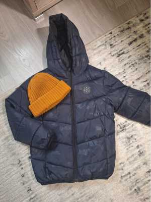Осенняя куртка 140 и шапка Н&М.