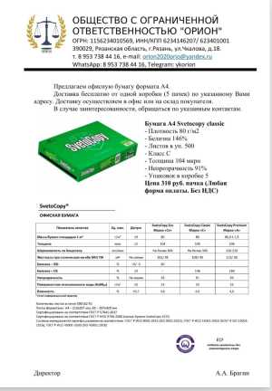 Бумага А, светокопи, доставка на склад или в офис бесплатно от 1й коробки (5 пачек) . Любая форма оплаты.