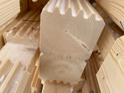 Профилированный брус естественной влажности, гребенка, шип-паз. Делаем так же проект и режем чашки на станке.