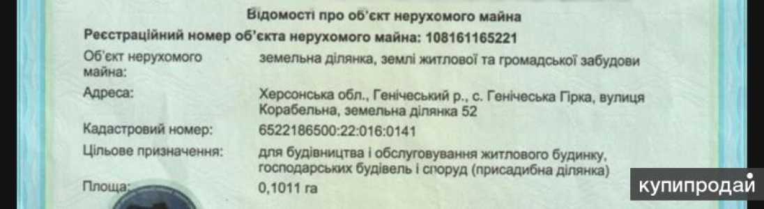 Участок в Генической Горке (Херсонская область) , недалеко от Храма, на горе, рядом пансионат "Арабатская стрелка...