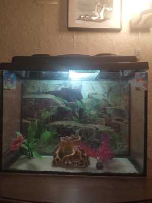 Прилагается фильтр для очистки воды, термометр,дикор.украшения, корм