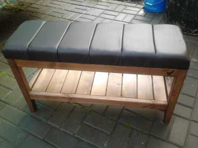 Обувница высота 50 см длина 90 см глубина 30 см мягкое сиденье секторная стяжка или прстое сиденье покрыта морилка + лак...