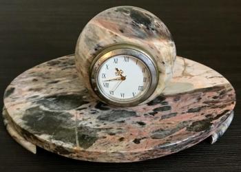 Продам часы настольные в натуральном полированном камне коричневого цвета с разводами.