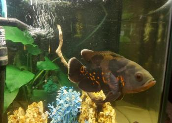 Астронотус, подарили месяц назад, очень смышленная бодрая, энергичная здоровая рыбка.