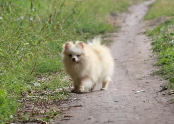 Шпиц, девочка, 4 года исполнилось летом, светло кремовая, крошечная, 20 см в холке. Веселая, ласковая и общительная.
